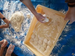 慣れた手つきでどんどん丸めていきます。