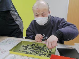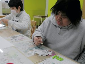先日から生活介護では、工作で フグのちぎり絵製作 をしています!