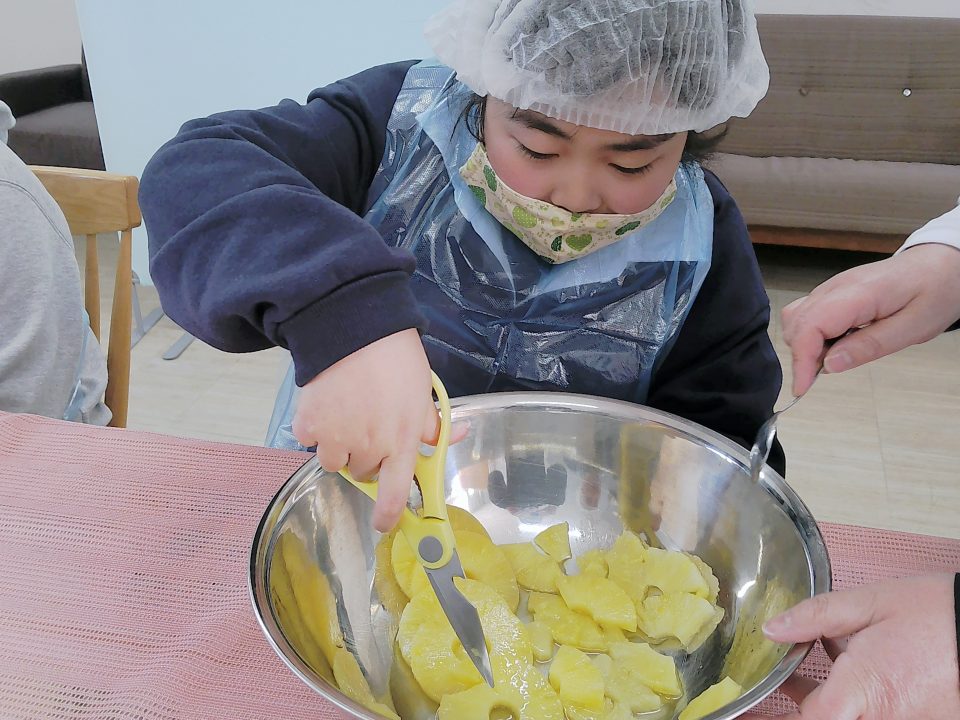 缶詰の果物はサイズが大きかったため、ハサミや包丁で食べやすい大きさにカットしています!
