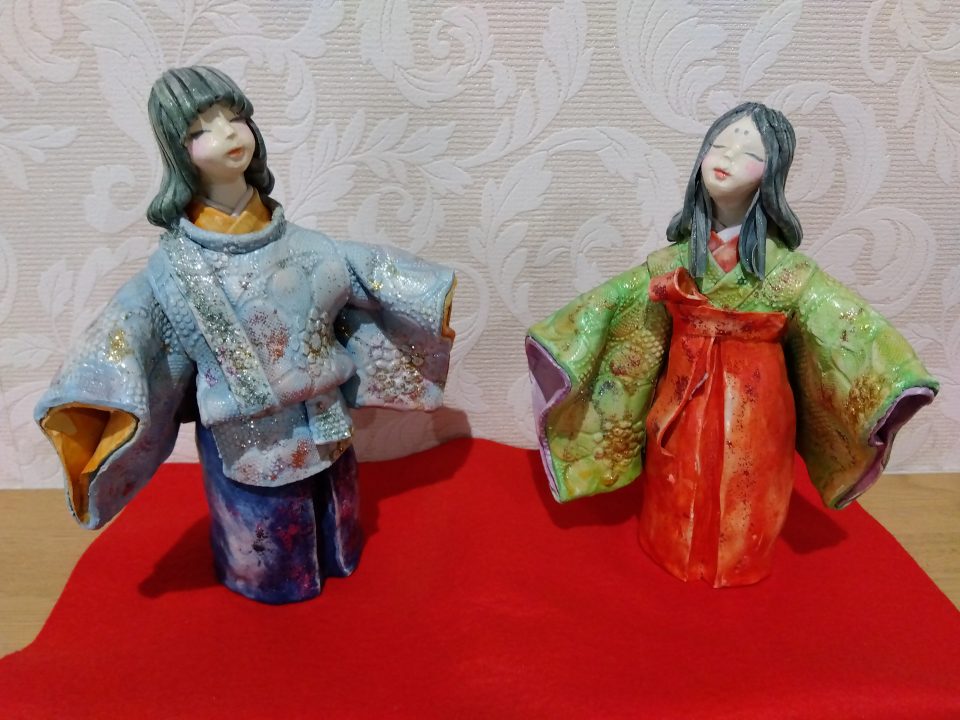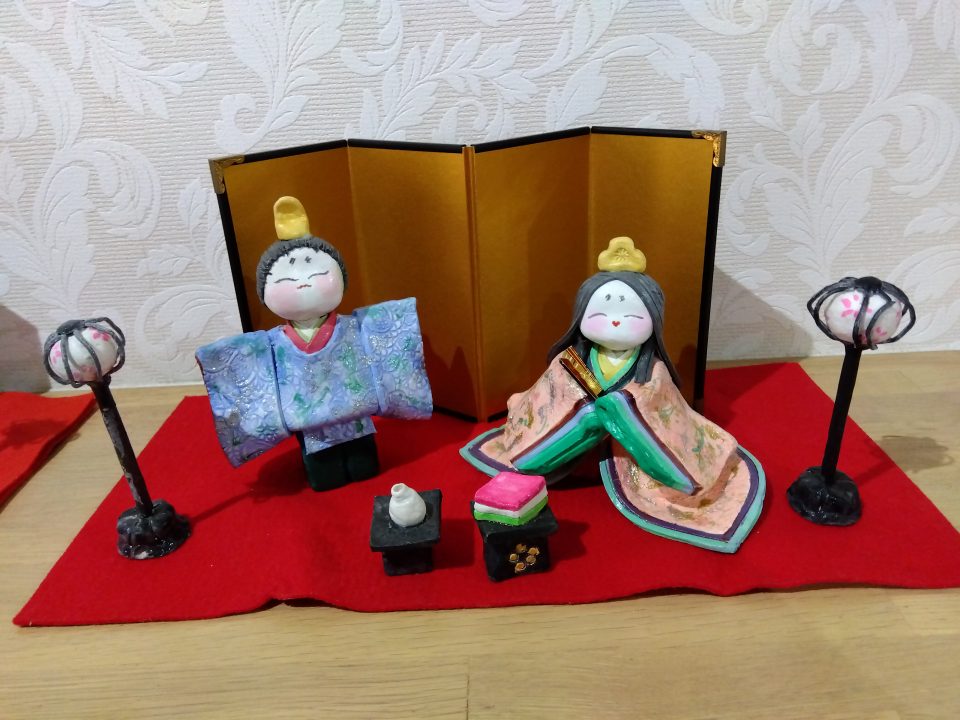 紙粘土で出来ているお雛様たちです