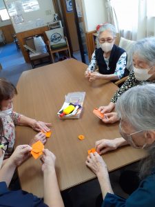 折り紙でかぼちゃ作りです(≧▽≦)✨