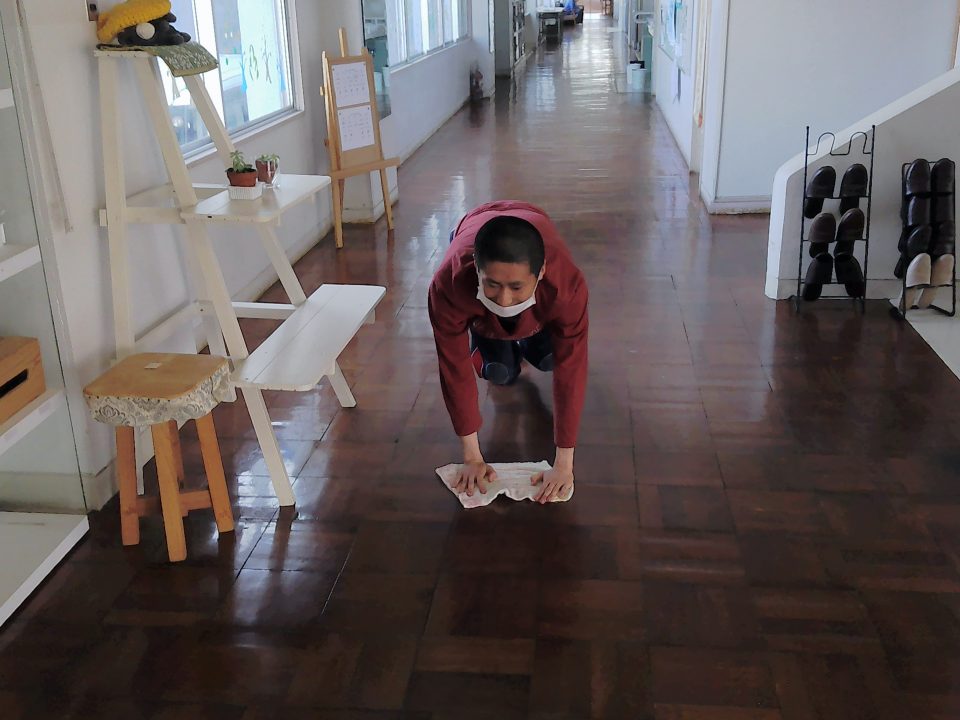 モップ掛けはみんな上手に出来ました(*^▽^*)