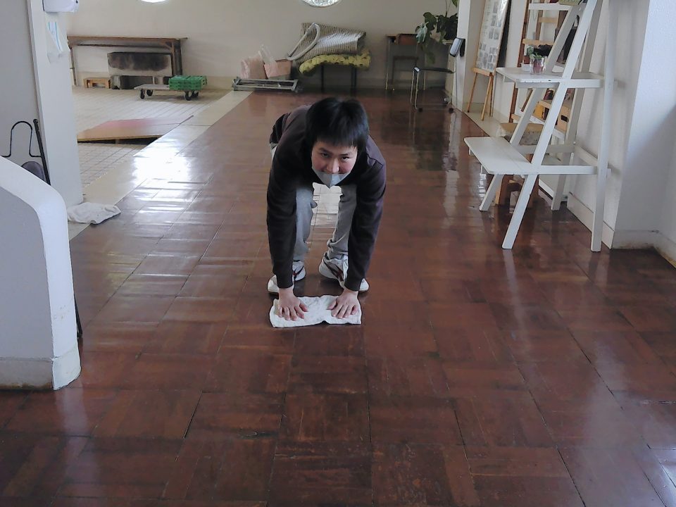 先日、野菜作業が少なかったので、結のところに対抗?して廊下の雑巾掛けをしてみました(^^ゞ