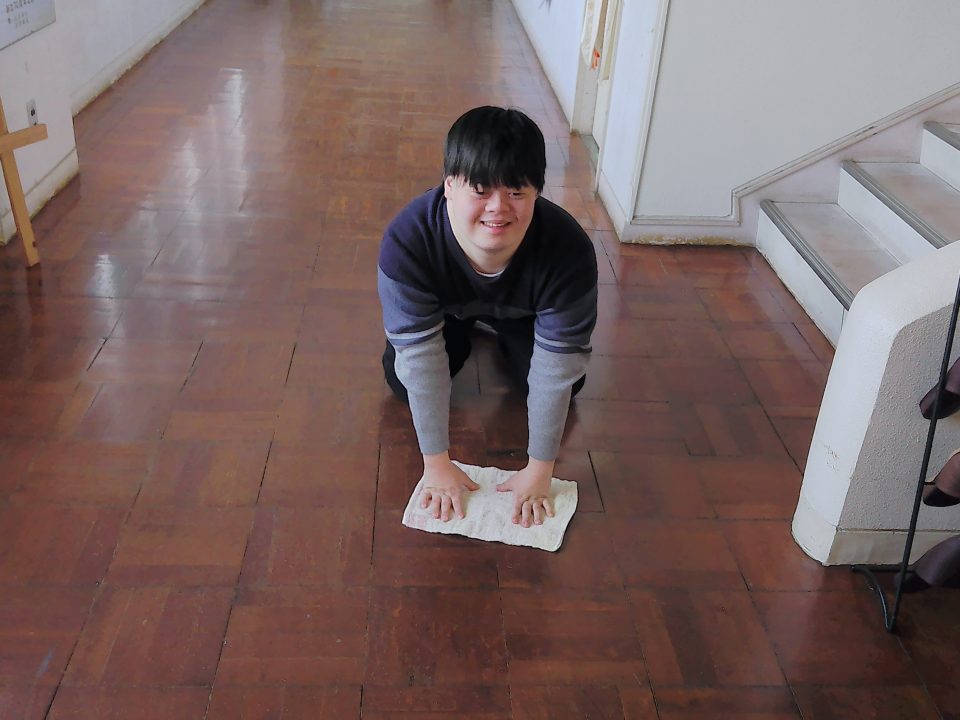 モップ掛けはみんな上手に出来ました(*^▽^*)
