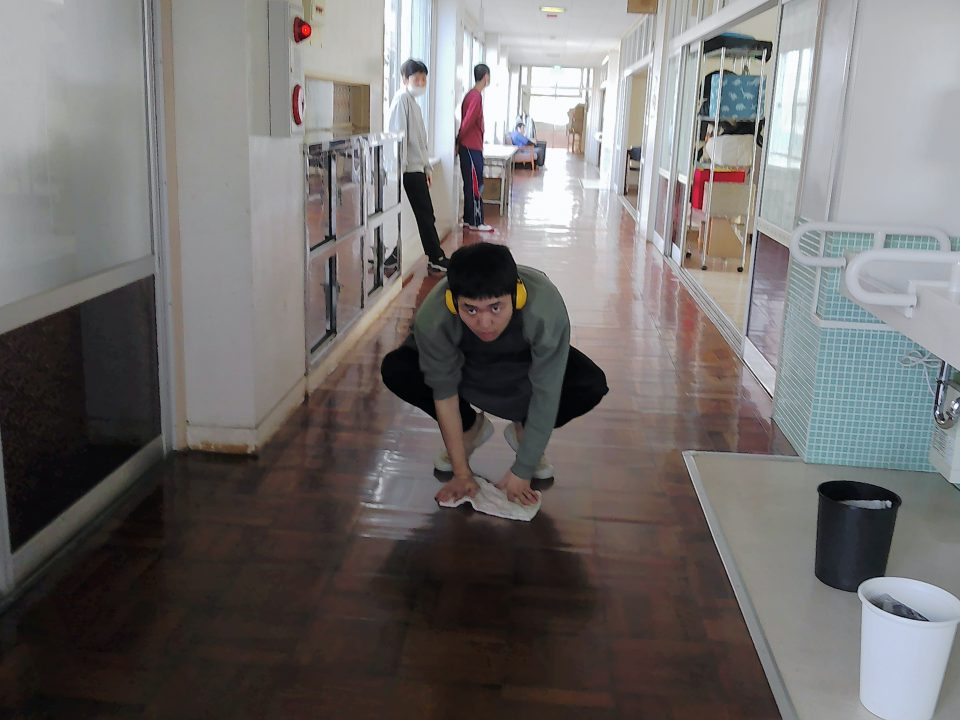 すみれの丘の廊下は、とーーーーっても長いので途中からモップかけに切り替えました(੭ु´・ω・`)੭ु⁾⁾