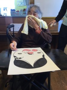 福笑いはみんな出来上がった自分の作品をみて爆笑していました。