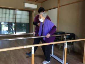 こちらを使って利用者様が歩行訓練・立位訓練を実施しています。