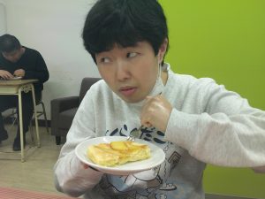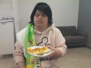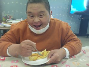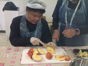 まずは自宅でよく料理をされている利用者さんにリンゴを切ってもらいました!