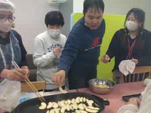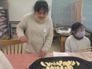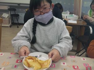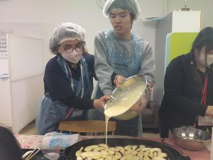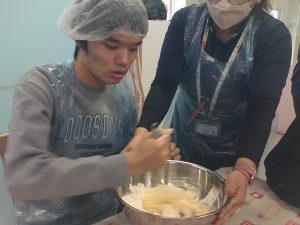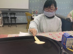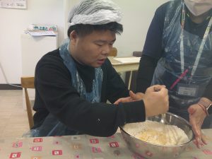 その後、リンゴと生地をざっくり混ぜ合わせてもらいました!