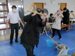 海と空の職員さんたちが準備をしてくださってから、いよいよ餅つき開始です( •̀ ω •́ )✧