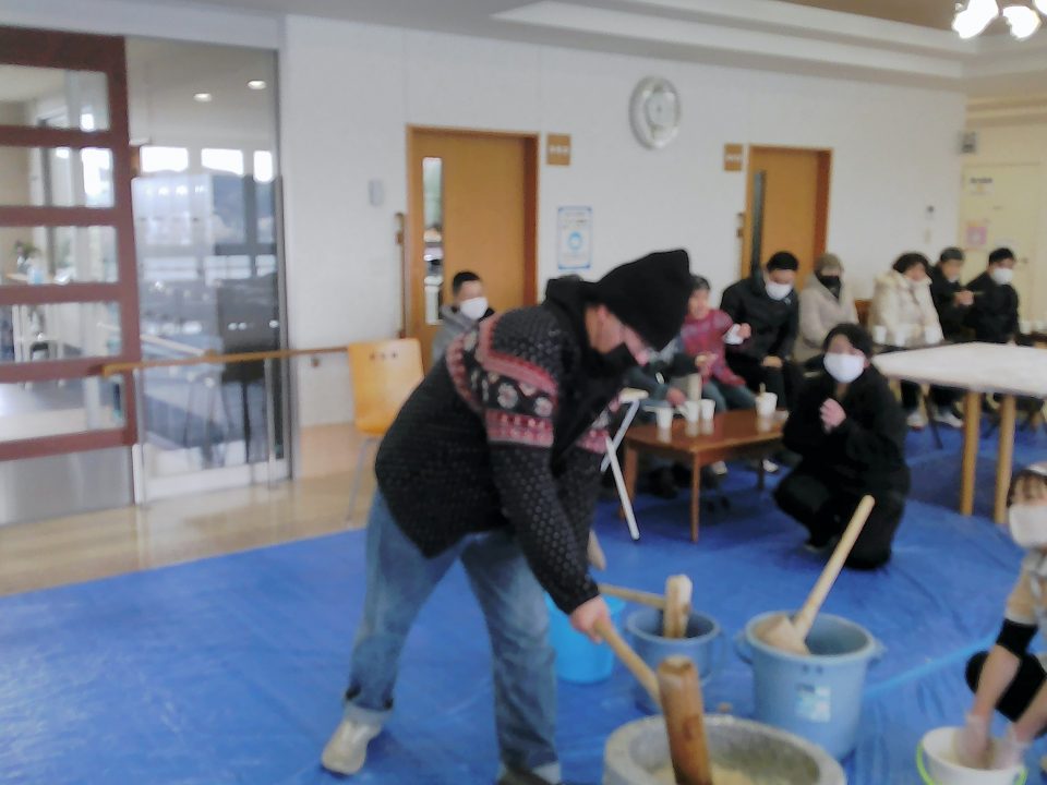 B型の利用者さんと一緒に海と空にお餅つきに参加してきました!