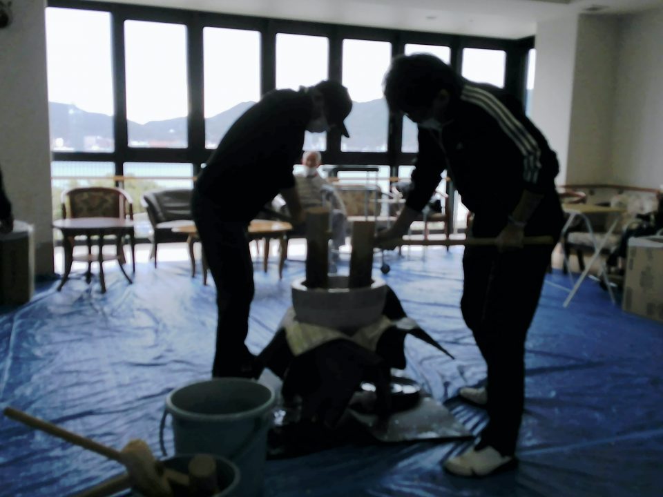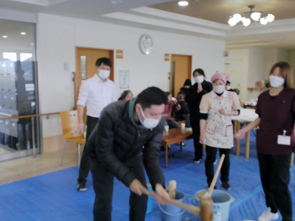 海と空の職員さんたちが準備をしてくださってから、いよいよ餅つき開始です( •̀ ω •́ )✧