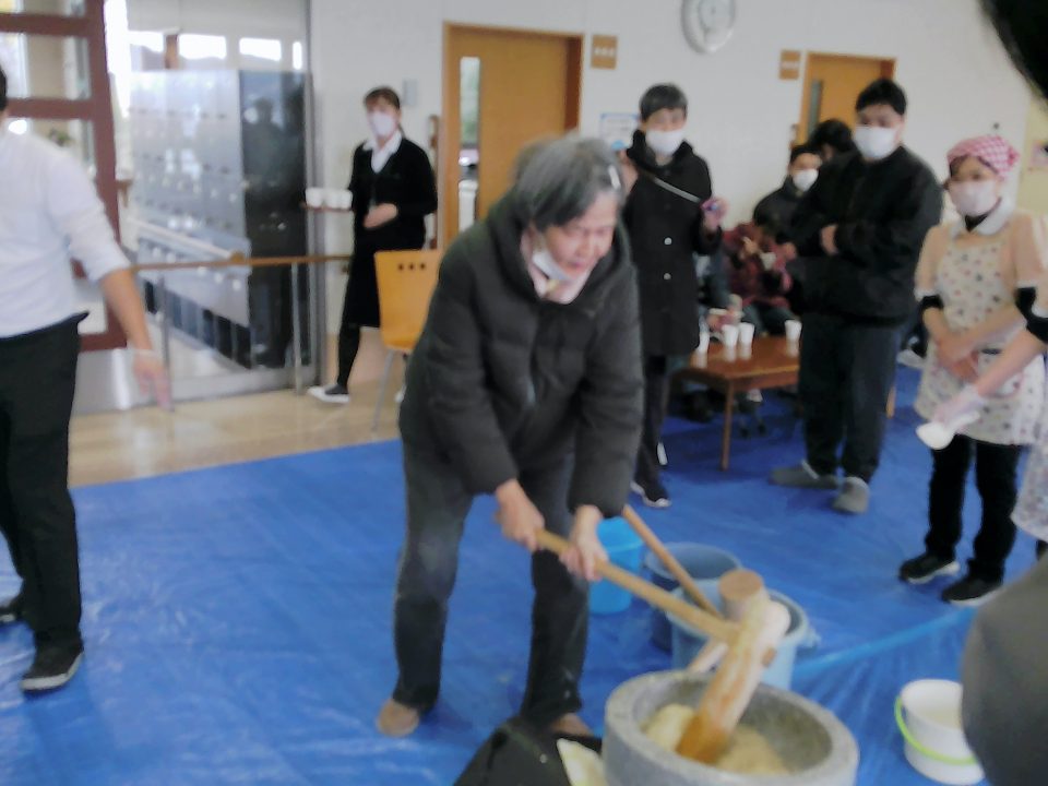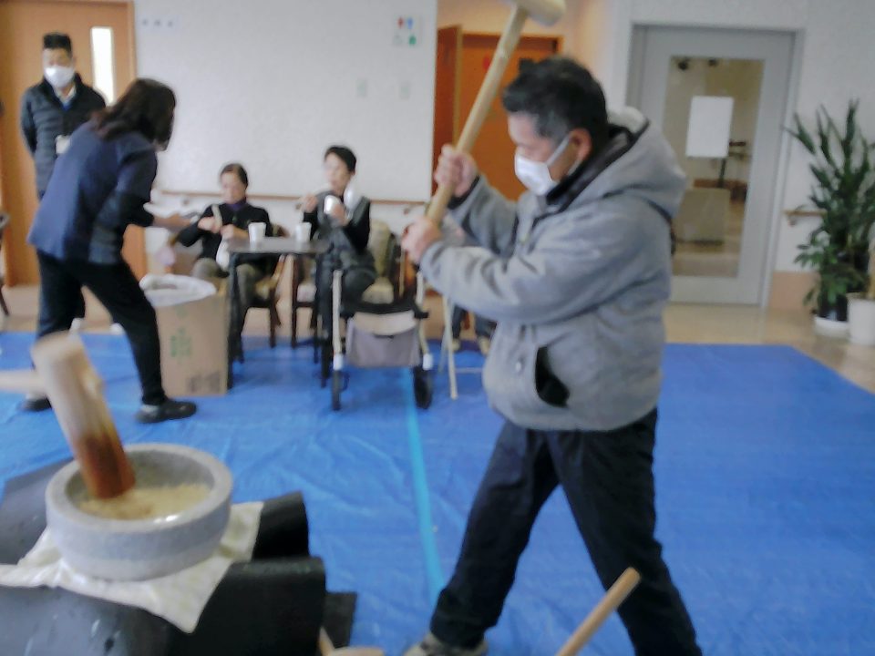 B型の利用者さんと一緒に海と空にお餅つきに参加してきました!