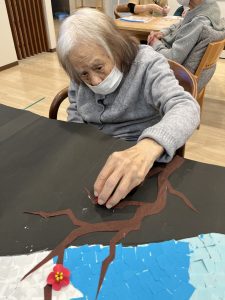 貼り絵だけではなく、細かい梅の花を作る
