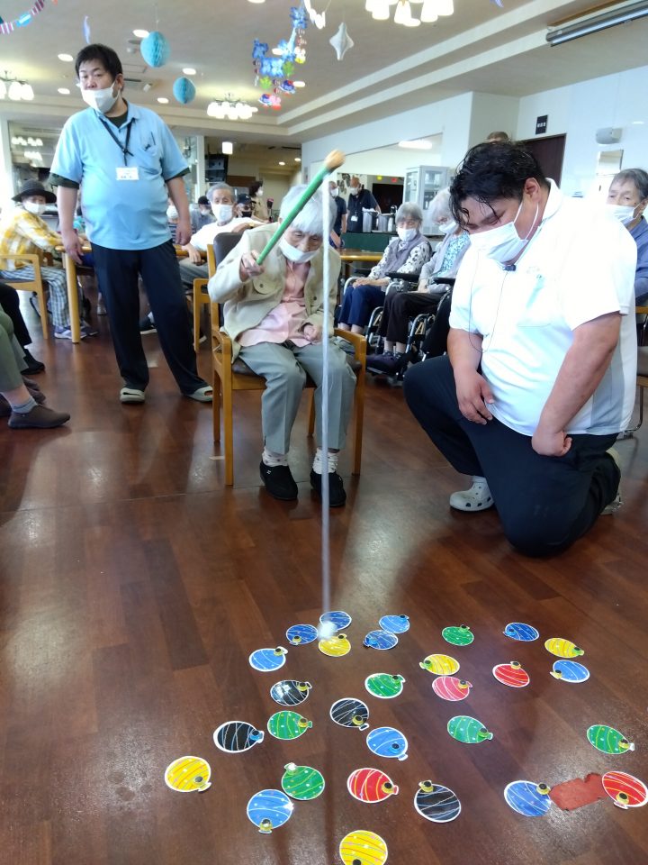 今月は夏祭りイベントでマルバツゲームをしました!参加する職員たちもはっぴを着て気合充分です!!