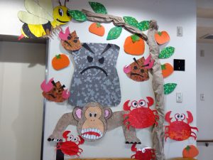 四肢レクのハロウィン的当てでは、玉がどこかに飛んでいったりマイナスの点数ばかりでした。。。